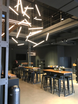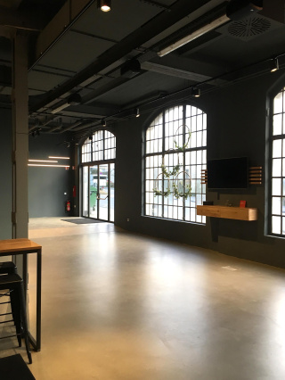 Die Räumlichkeiten der Hillsong Church befinden sich in einem denkmalgeschützten Fabrikgebäude aus dem frühen 20. Jahrhundert. Der Innenraum des hallenartigen Baukörpers wird von einer dreischiffigen Stahlkonstruktion und Außenwänden aus Backsteinmauerwerk gehalten. Nebenräume befinden sich an den Schmalseiten der Hallenkonstruktion sowie auf den umlaufenden Galerieflächen des Obergeschosses. Ziel des vorliegenden Entwurfes war die Schaffung eines großzügigen Foyerbereiches mit Café, welches vor, nach und auch während den Gottesdiensten für Besucher zur Verfügung steht. Das Auditorium wurde um eine fest eingebaute Sitztribüne ergänzt und somit Raum für insgesamt ca. 550 Gottesdienstbesucher geschaffen. Trotz der Teilung des ca. 45 Meter langen Industrieraumes konnte der hallenartige Charakter erhalten werden. In Zusammenarbeit mit der Denkmalpflege wurden Konzepte erarbeitet, bei denen historische Bauteile behutsam behandelt und um neue funktionale Elemente ergänzt wurden. Im Zuge der Sanierungsmaßnahme wurde das Gebäude sicherheitstechnisch umfangreich aufgerüstet. Eine Brandmeldeanlage wurde installiert sowie ein Großteil der Elektrik erneuert. Foyer und Auditorium wurden mit einer Lüftungsanlage einschließlich Heiz- und Kühlfunktion ausgestattet.