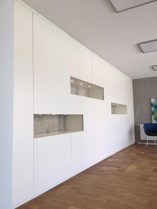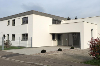 Im Zuge der Baumaßnahme wurde der bestehende Keller entkernt, statisch aufgerüstet und zu einer Tiefgarage für Mitarbeiter ausgebaut. Der angrenzende, massive Bürobau aus den 1970er Jahren wurde saniert und durch den Anbau eines hellen Eingangsbereiches aufgewertet. Bei der Planung des Projektes hatten sich Bauherrschaft und Planer bewusst dazu entschieden, die nutzbare Gebäudesubstanz (Stahlbeton und zweischaliges Mauerwerk) weitgehend zu erhalten, um so den Gesamt- Energieaufwand für die Baumaßnahme möglichst gering zu halten.